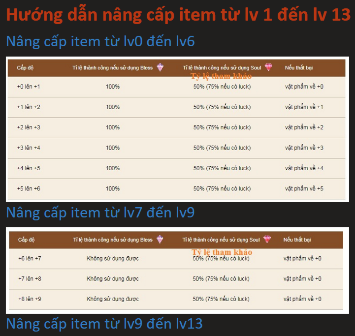 Hướng dẫn nâng cấp Item từ Level 1 đến Level 13
